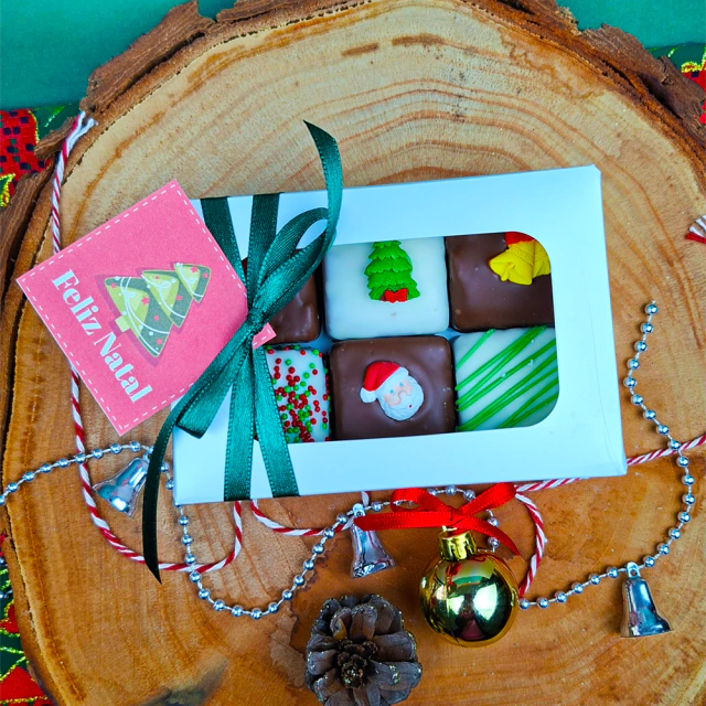 Feitos com massa macia e úmida de chocolate, são banhados com chocolate ao leite ou branco e finalizados com uma decoração temática natalina encantadora, que traz o toque mágico das festas de fim de ano.